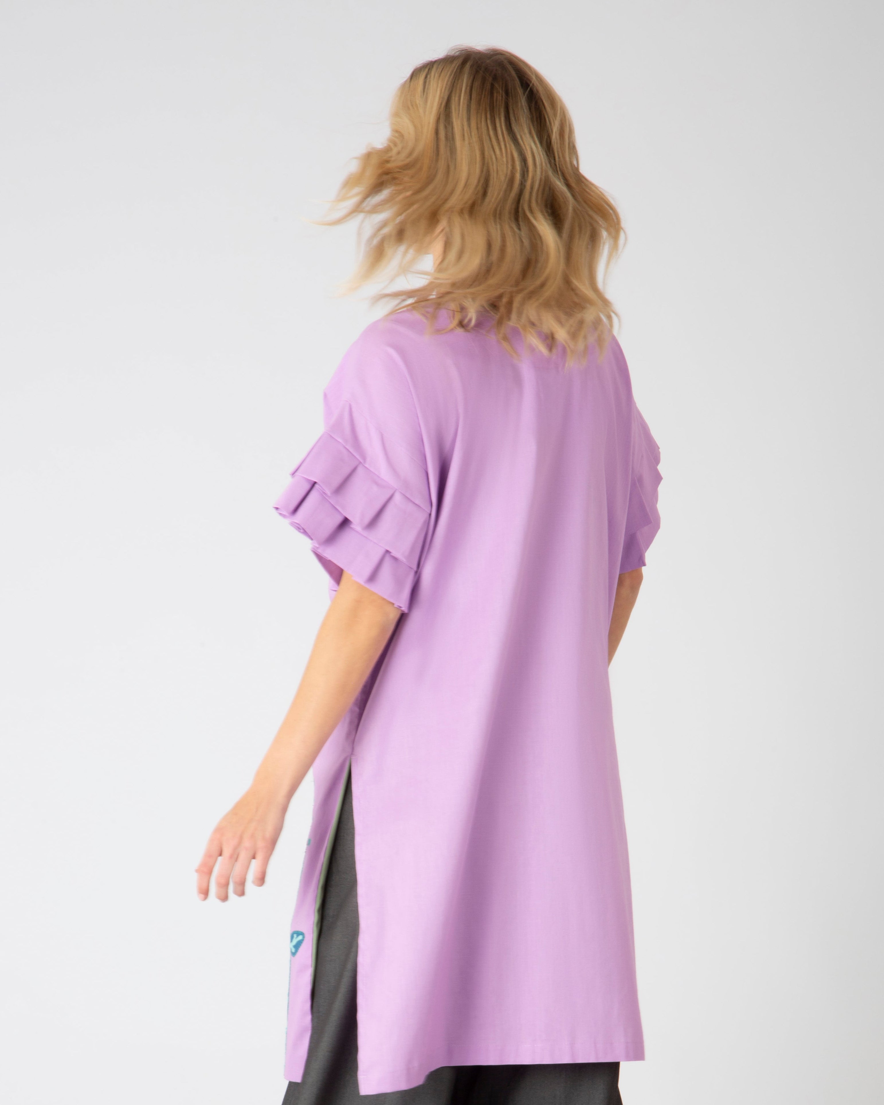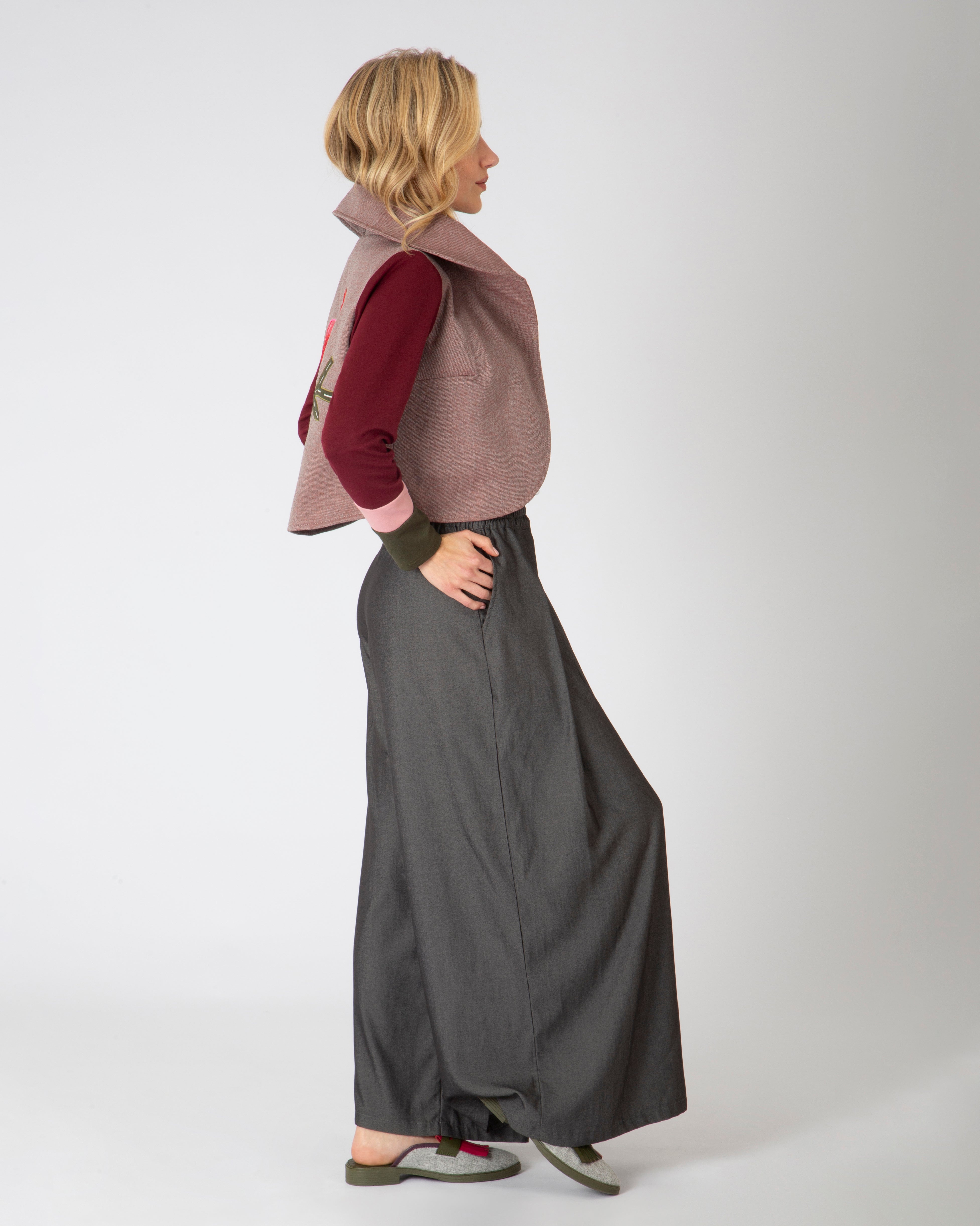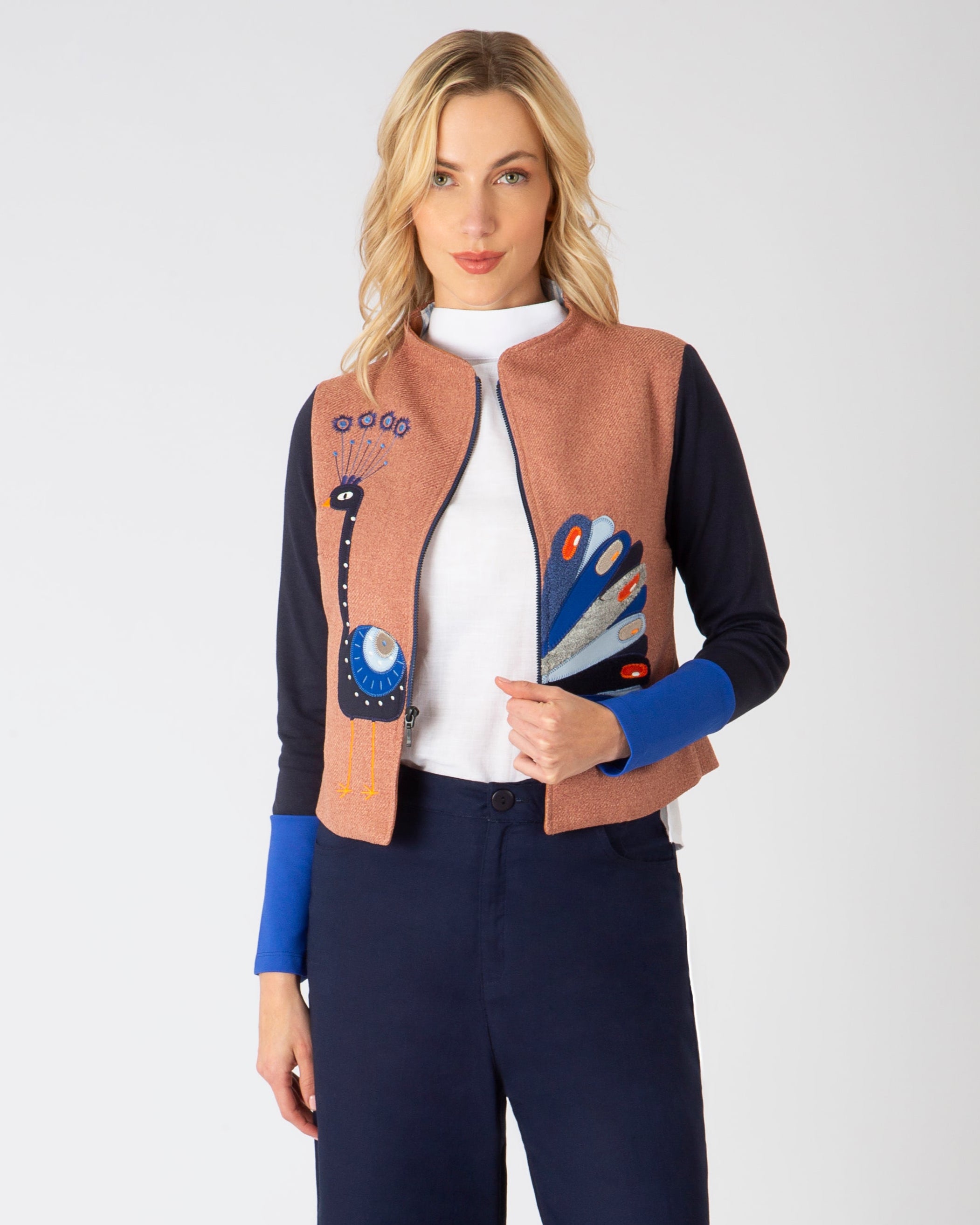 Cada prenda lleva texturas vivas: bordados con alas, antenas, pétalos y escamas. Hilos que respiran. Relieves que cuentan historias. Nada es plano, porque aquí todo tiene alma.