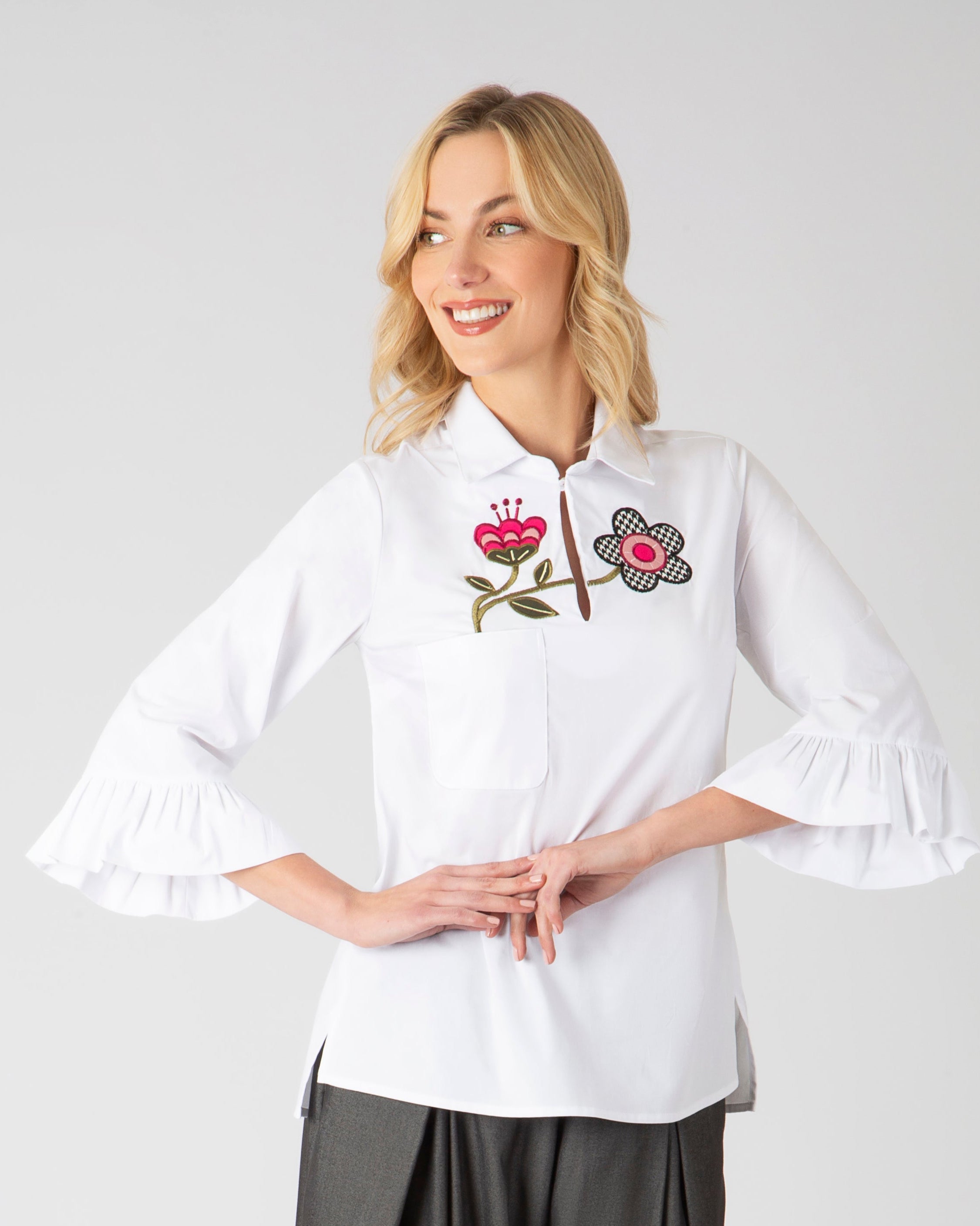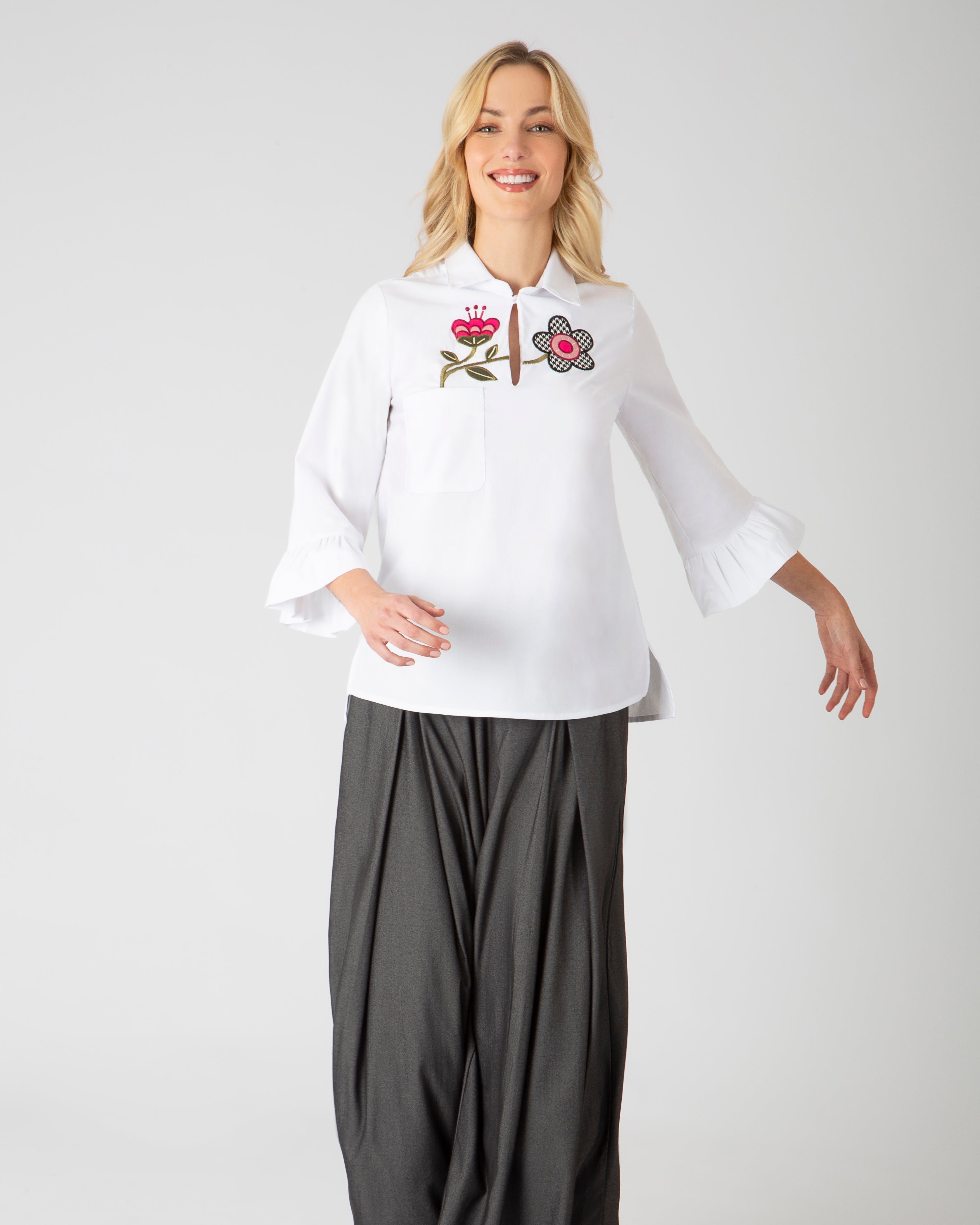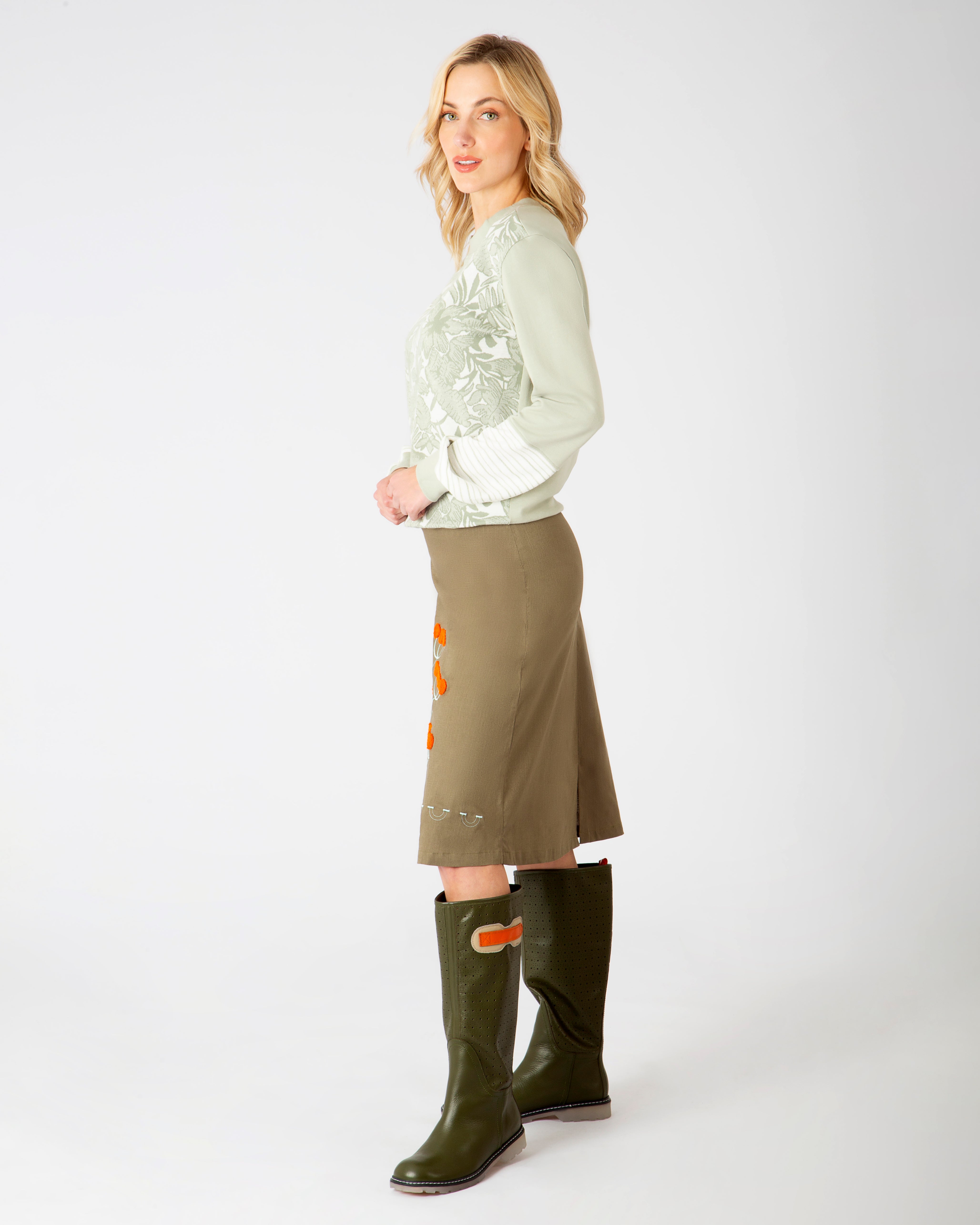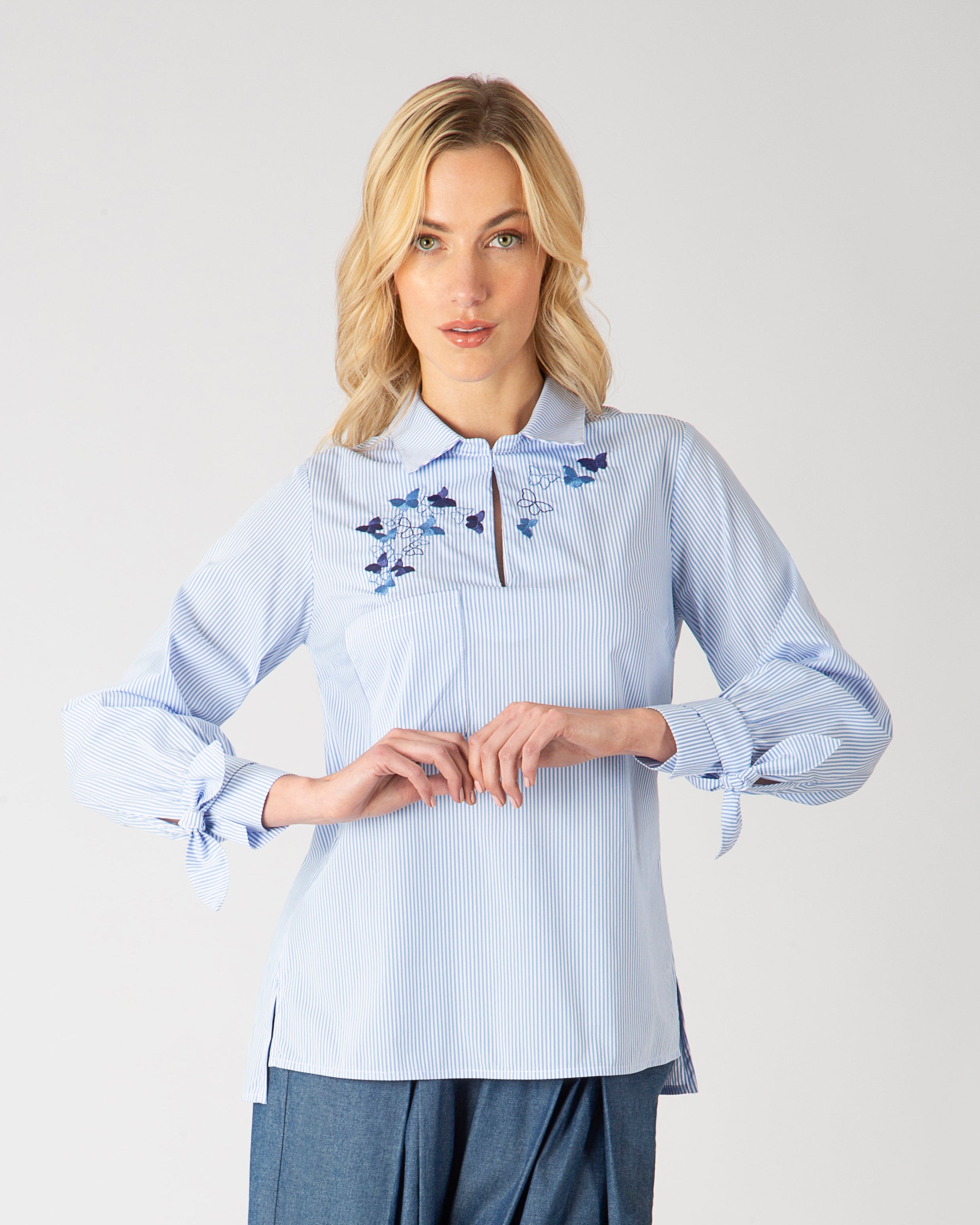 Cada prenda lleva texturas vivas: bordados con alas, antenas, pétalos y escamas. Hilos que respiran. Relieves que cuentan historias. Nada es plano, porque aquí todo tiene alma.